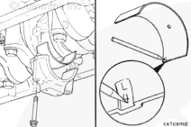 Remove the bearing shell, and mark the cylinder number and the letter “U” in the flat surface of the bearing tangs.