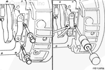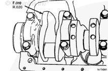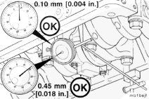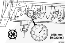 Measure the crankshaft end clearance. The end clearance specification for a new or reground crankshaft with new thrust bearings is 0.10 mm [0.004 in] to 0.45 mm [0.018 in].