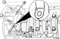 NOTE: The number 7 main bearing cap has thrust bearings and dowel pins.