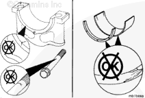The grooves of the thrust bearing must be toward the crankshaft. The locating dowels must not protrude above the thrust bearing surface. Incorrect thrust bearing installation will result in engine damage.