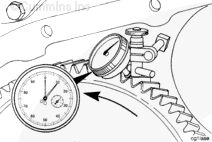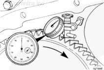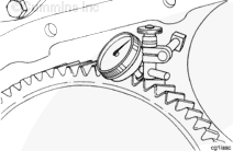 If the backlash is excessive, inspect the camshaft and crankshaft gears for tooth wear and replace if necessary. If the backlash is tight, inspect for debris or damage to the gear teeth and check again.
