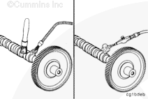 If the backlash is excessive, inspect the camshaft and crankshaft gears for tooth wear and replace if necessary. If the backlash is tight, inspect for debris or damage to the gear teeth and check again.