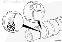 NOTE: If the area of fretting is wider than a 3.175 mm [0.125 in] wide longitudinal band, do not use the camshaft. Fretting or other damage can result in gear movement on the camshaft nose and can cause a camshaft nose malfunction.