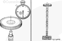 If the inside diameter of the gear is damaged or has fretting in excess of a 3.175 mm [0.125 in] wide band, do not use the gear. Fretting or other damage can result in gear movement on the camshaft nose, which can cause camshaft nose failure.