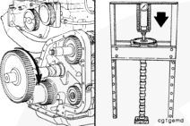 Inspect the camshaft gear for cracks, chipped, or broken teeth.