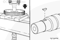 NOTE: If the same camshaft and gear are used again, use the same part number key as the one that was removed. Make sure the arrow on the key is pointing in the same direction as when it was removed.