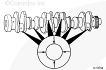 Crankshafts which are ground undersize in the connecting rod or the main bearing journals are normally marked on the front counterweight.