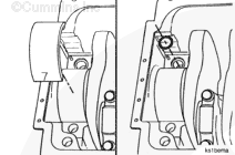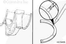 NOTE: If installed correctly, the ends of the bearing shells (1) will meet approximately 1.50 mm [0.060 in] below the cylinder block main bearing mounting surface.