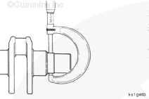 Measure the crankshaft end clearance. The end clearance specification for a new or reground crankshaft with new thrust bearings is 0.18 mm [0.007 in] to 0.45 mm [0.018 in].