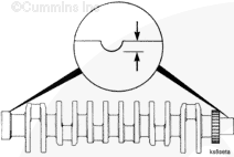 The grinding process should be carried out in increments of 0.0254 mm [0.001 in] or less, to avoid burn damage to the crankshaft or unnecessary removal of material.