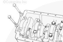 Do not rotate the crankshaft until the main bearing capscrews are tightened. This will keep the bearings in place.