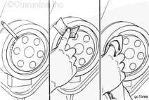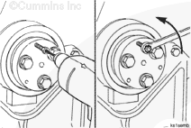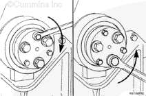 Tighten the three capscrews alternately in half turn increments until the oil seal is installed flush with the gear cover bore.