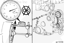 Mount a dial indicator onto the front of the crankshaft. Check the concentricity of the seal bore. The total indicator reading must not exceed 0.38 mm [0.015 in].