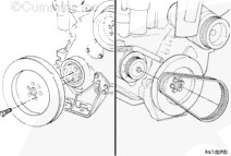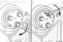 Use three of the damper mounting capscrews to secure the top plate, Part Number ST-1259-1 (from oil seal puller/installer, Part Number 4919704), to the front of the crankshaft.