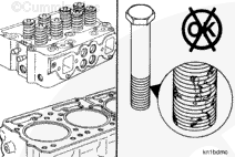 If leakage is observed in any other place besides the capscrew holes, refer to the NH/NT 855 Counterbore Troubleshooting and Repair Manual, Bulletin Number 3810450.