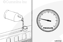 Pressurize the block between 70 kPa to 85 kPa [10 psi to 12 psi] for 15 minutes.