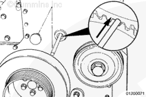 Use a rod to reach inside the gear housing through the engine position sensor mounting hole and push the camshaft gear as far as possible toward the front of the engine.