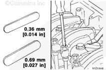 A condition on CELECT™ and CELECT Plus™ engines where the engine will not start or is difficult to start can be caused by excessive clearance between the engine position sensor and the pickup on the back of the camshaft gear. This condition prevents the engine position sensor from sending the necessary signal to the electronic control module. The excessive clearance can be caused by a failed thrust bearing on the camshaft. Use this procedure to measure the camshaft end clearance in-chassis on CELECT™ and CELECT Plus™ engines without removing the front gear cover. If the end clearance is not