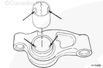 Install the bushing in the injector rocker lever with the split clinch joint toward the top of the lever.
