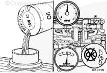 Add the specified amount of 36 liters [9.5 gal] of clean 15W-40 oil to fill the oil pan.