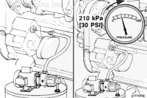 Allow the oil to flow until the oil pressure gauge indicates a maximum pressure of 210 kPa [30 psi] at the main oil rifle to prime the lubricating oil system.