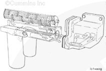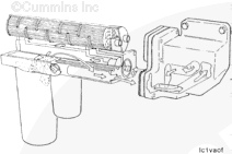 When the oil temperature exceeds 124°C [255°F] out of the lubricating oil pump, the bypass valve extends to close the bypass loop in the cooler assembly. This will force all of the oil to flow through the cooler core before reaching the filter head.