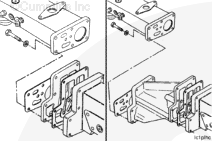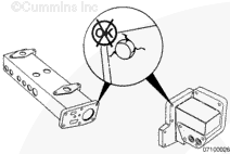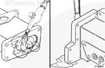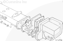 Place the spacer plate and a new spacer gasket onto the oil cooler support. If the oil cooler is the low mount type, use the drop mount connection and the spacer plate. Use two of the connection retainer capscrews to keep the gasket and the plate loosely aligned on the support.
