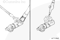 Wear appropriate eye and face protection when using compressed air. Flying debris and dirt can cause personal injury.