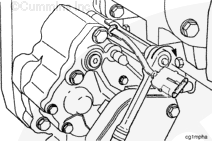 Install the new sensor into the mounting hole in the cylinder block (gear housing on M11 engines).