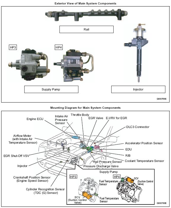 • This system is basically the same as the HP3 type, however it uses the HP4 type supply pump, which has an increased pumping quantity to handle larger engines. This system is mostly mounted in medium-size trucks.