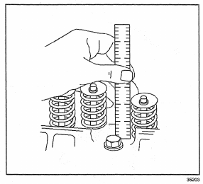 15.1. Using a narrow thin scale, measure the valve installed height from the spring seat in the cylinder head to the top of the valve spring cap. Refer to Engine Mechanical Specifications.