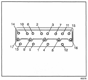 5. Install the cylinder head bolts and tighten in sequence in four passes.
