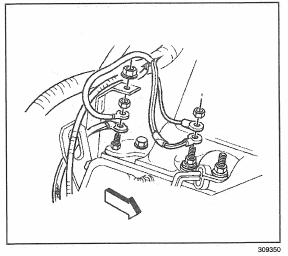 9. Install the ground strap to the right rear cylinder head.