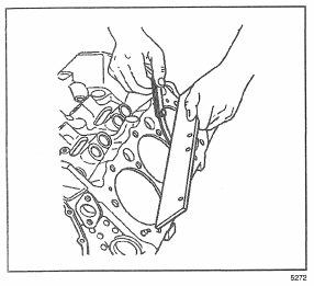 12. Inspect the engine block to cylinder head gasket surface are a for warping. Use a straight edge and feeler gauge. Replace the block if it is warped more than 0.15 mm (0.006 in) longitudinally or more than 0 .08 mm (0.003 in) transversely.