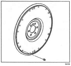 3. Inspect the flywheel for loose or improperly installed balance weights (manual transmission only). A properly installed balance weight should be installed until flush with, or below, the face of the flywheel.