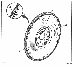• Welded areas that retain the ring gear on to the flywheel for cracking (automatic transmission only).