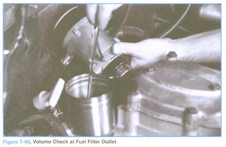 • If the volume is more than 0.24 liter (1/2 pint) in 15 seconds, check the fuel filter.