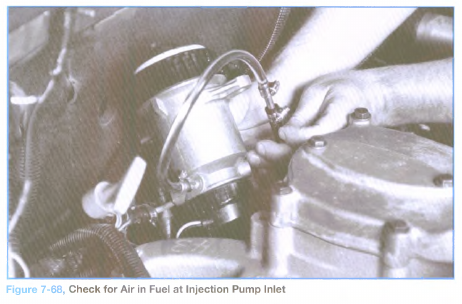 B. Start and run the engine, observing the fuel for air bubbles (see Figure 7-68):