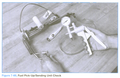 – If vacuum drops, replace the fuel pick-up/sending unit, install the fuel tank, attach the suction line