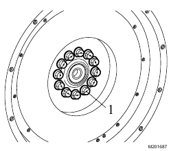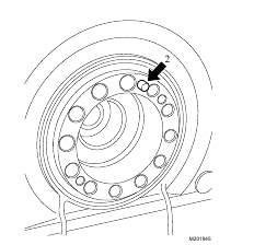 1. Clean the crankshaft flange and the dowel pin (2).